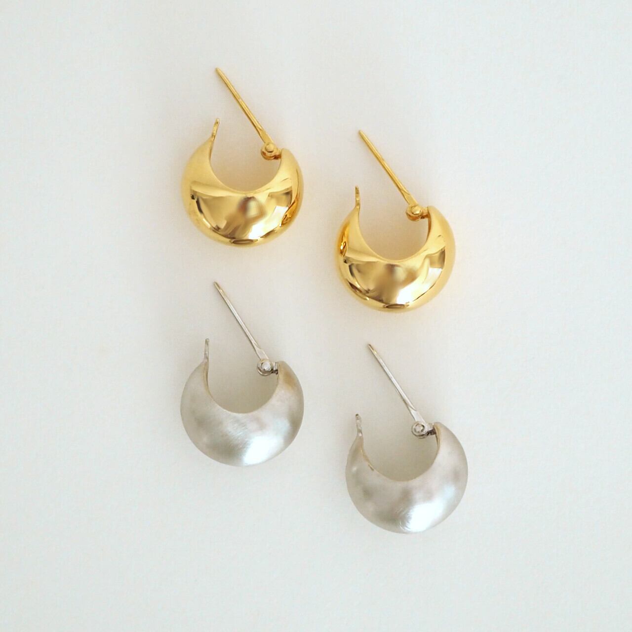 忙しい朝にもサッと着けられるワンタッチピアスです。耳たぶを包み込むような雫モチーフのぷっくりしたシルエット。前から金具が見えないように配慮されています。服装を選ばず、そして飽きがこない、デイリーにもオケージョンにも使える万能アイテムです。