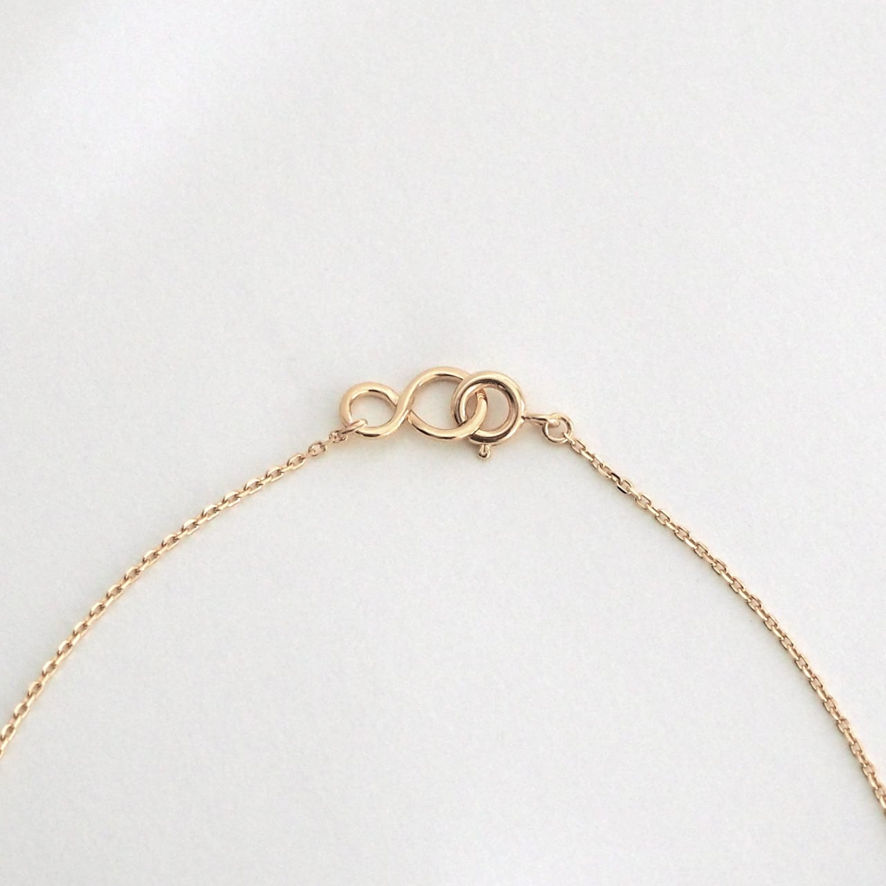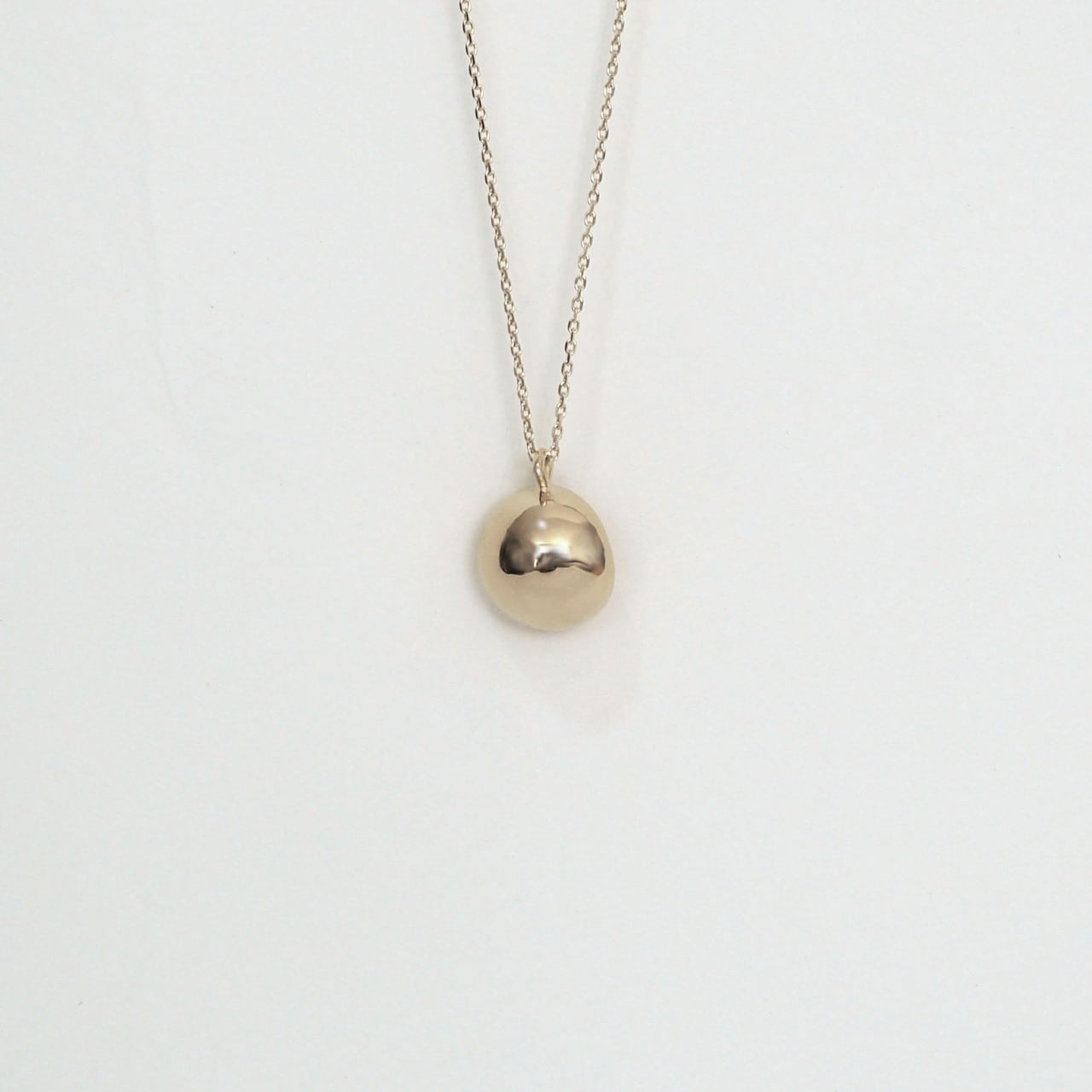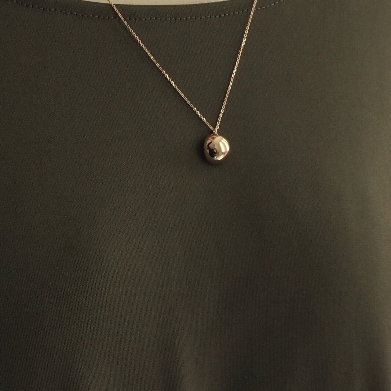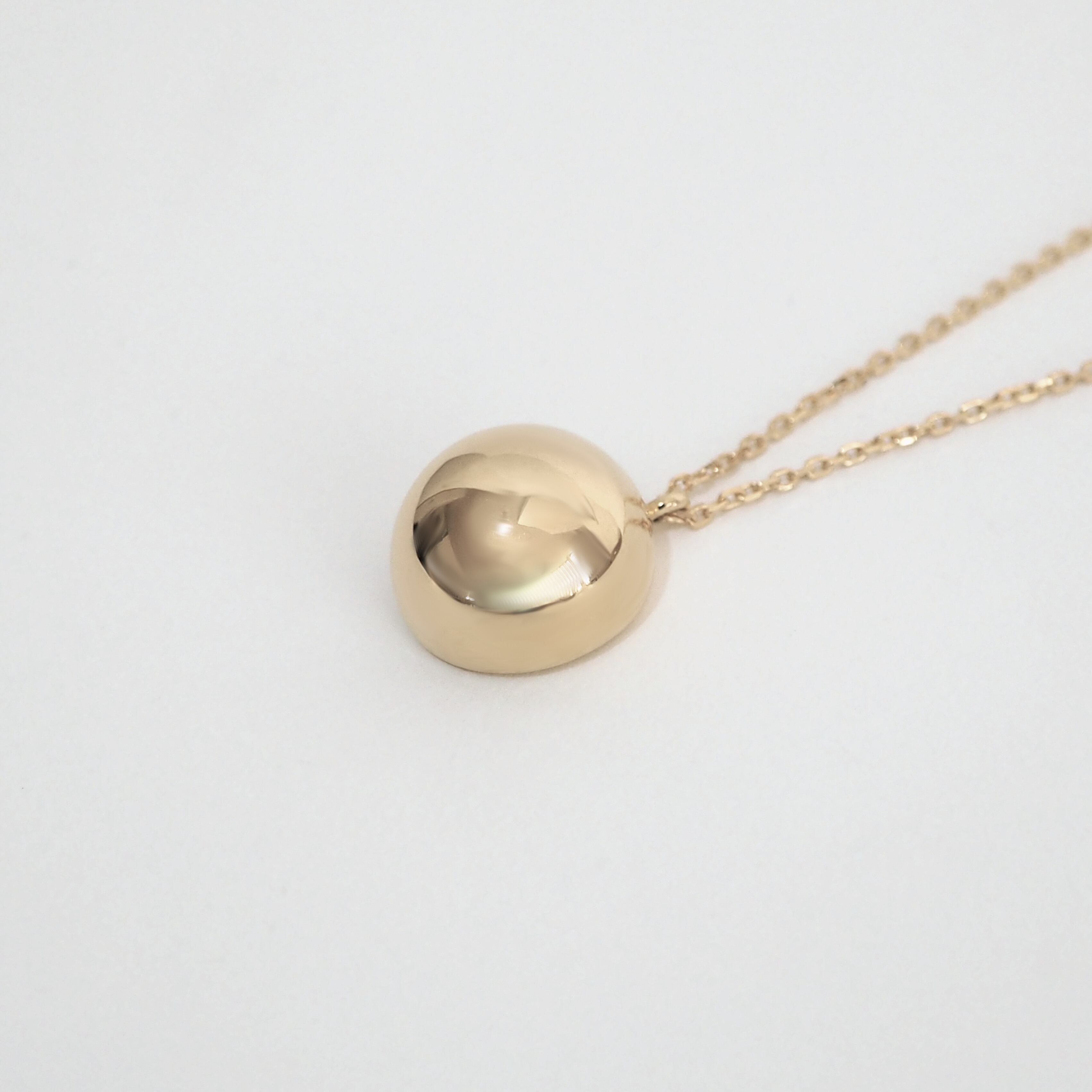 月の満ち欠けをモチーフにしたネックレス。前、横、見る角度によって形が新月〜三日月〜満月と変化を描くようデザインされています。こちらはトップとチェーンの一体型ネックレスとなっておりますので脱着時トップの紛失が防げます。トップの取り外しはできませんのでご注意ください。