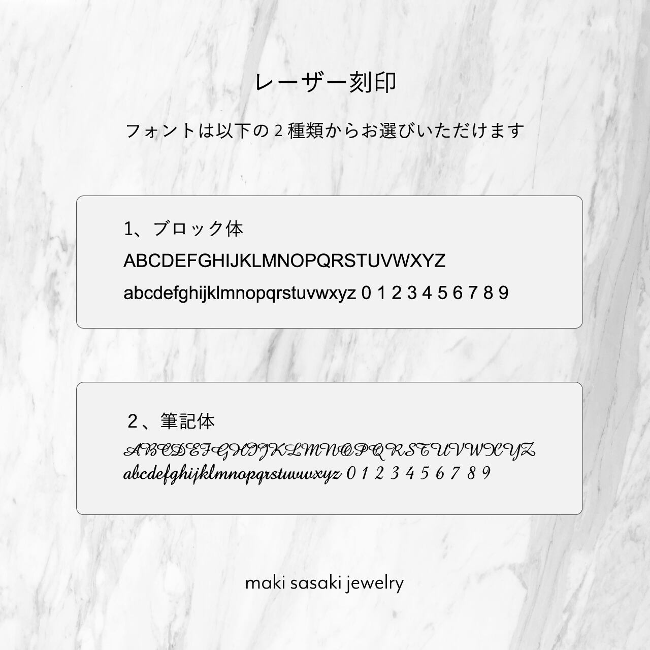 内側にレーザー刻印による文字入れが可能です。家族が増えた記念に。自分の中で誓いを立てるとき。自分だけのメッセージを刻むことで、パーソナルジュエリーとしてあなたの日々に寄り添ってくれます。