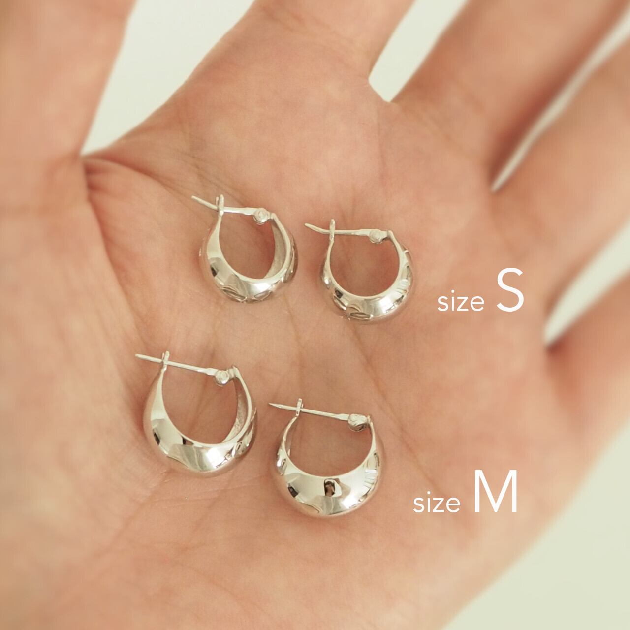 三日月をモチーフにしたキャッチの要らないワンタッチピアスです。前から金具が見えないように配慮されています。定番ながら、ほどよいボリューム感と滑らかで品のよいシルエットはどんな服装にも合わせやすくデイリーにもオケージョンにも活躍するアイテムです。
