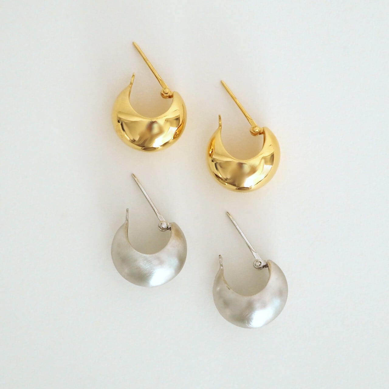 忙しい朝にもサッと着けられるワンタッチピアスです。耳たぶを包み込むような雫モチーフのぷっくりしたシルエット。前から金具が見えないように配慮されています。どんな服装にも合わせやすく、そして飽きがこない、デイリーにもオケージョンにも使える万能アイテムです。